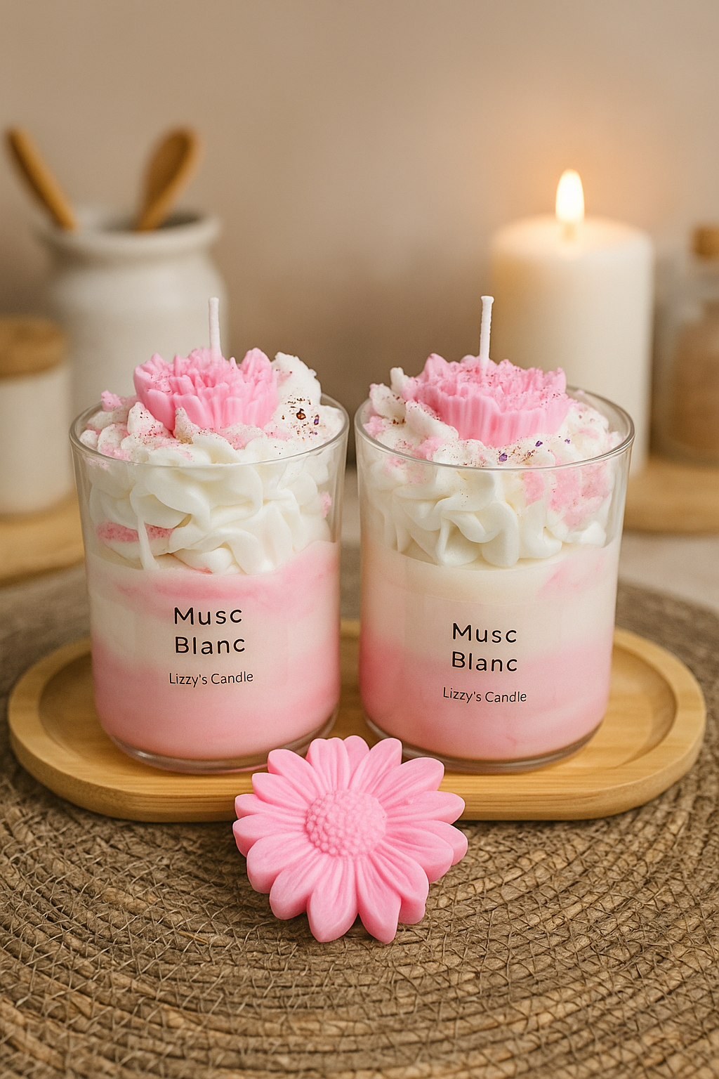 Plongez dans un nuage de douceur avec notre bougie Musc Blanc, un parfum délicat, enveloppant et raffiné.