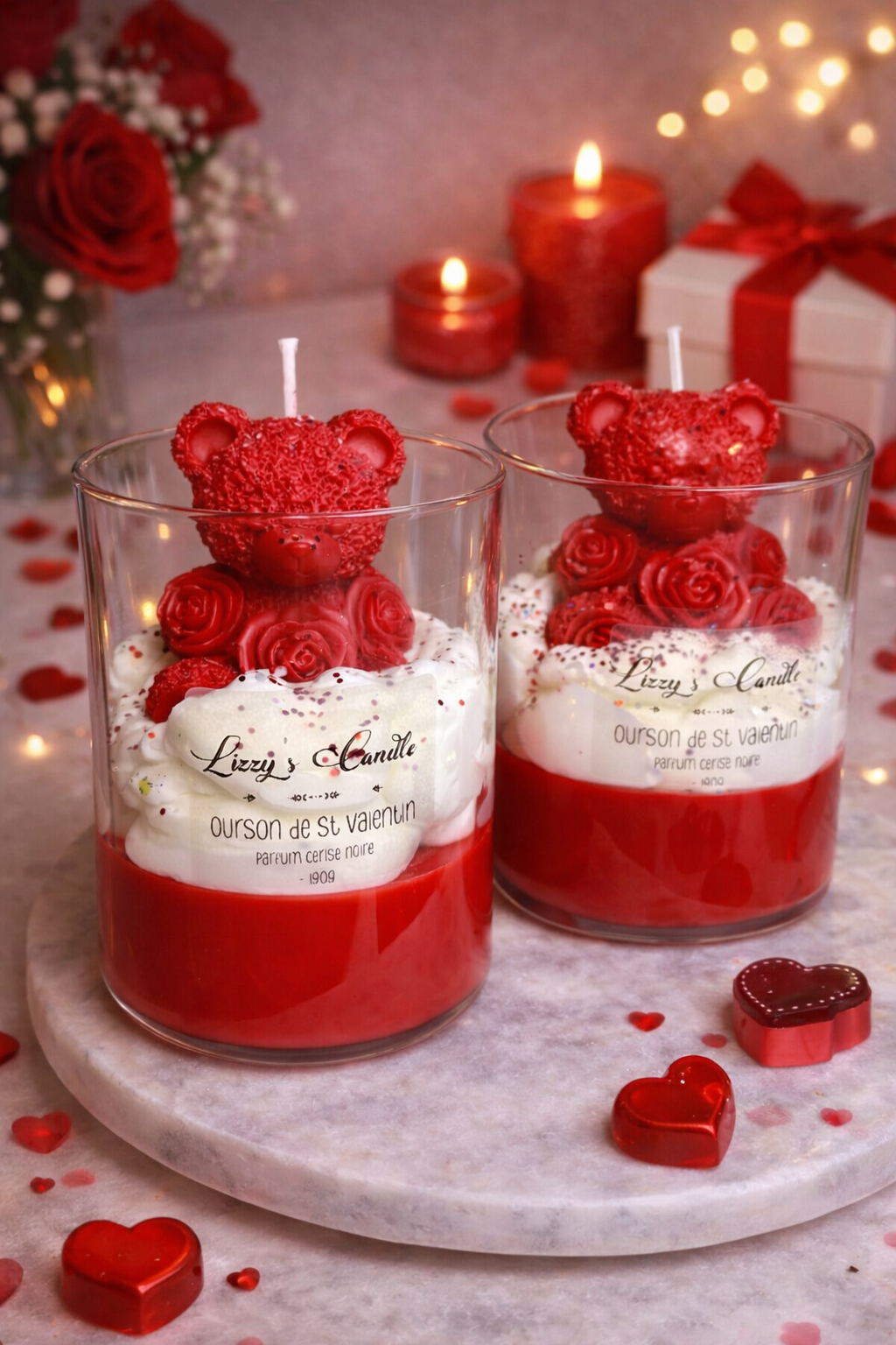 La bougie Ourson Cerise est une création artisanale imaginée spécialement pour la Saint-Valentin.