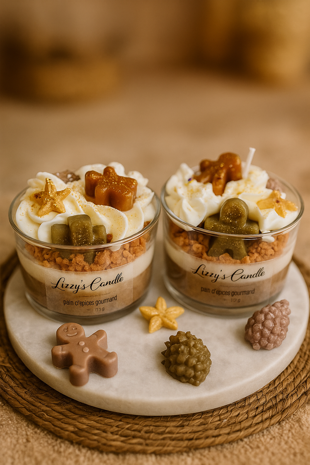 Chaque bougie est fabriquée et décorée à la main, les nuances de couleur et textures peuvent légèrement varier, rendant chaque création unique ✨
